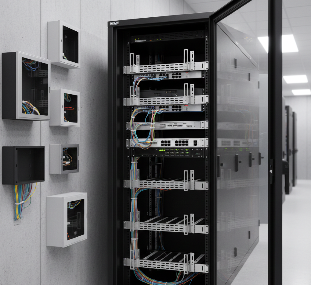 Inclui caixas de derivação, caixas de proteção para câmaras e suportes de fixação.