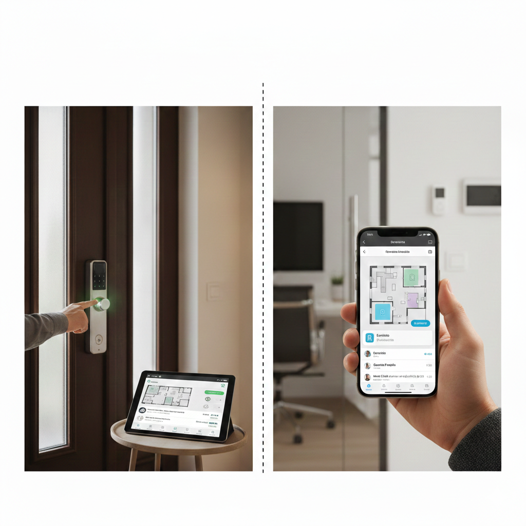 Inclui fechaduras inteligentes, teclados digitais e leitores biométricos que permitem abertura por código, cartão, impressão digital ou app móvel.